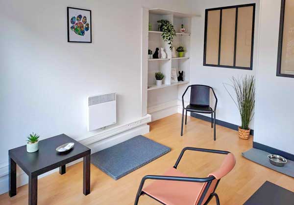 Ce lieu chaleureux me permet d'accueillir vos chiens, chats et NACs (Nouveaux Animaux de Compagnie). Situé en Ille-et-Vilaine, au 26 Grande Rue à Saint-Jouan-Des-Guérets, le cabinet est accessible aux personnes à mobilité réduite et se compose d'une salle d'attente spacieuse afin de respecter l'espace de chaque animal en cas de croisement avec un congénère et d'une salle de consultation.